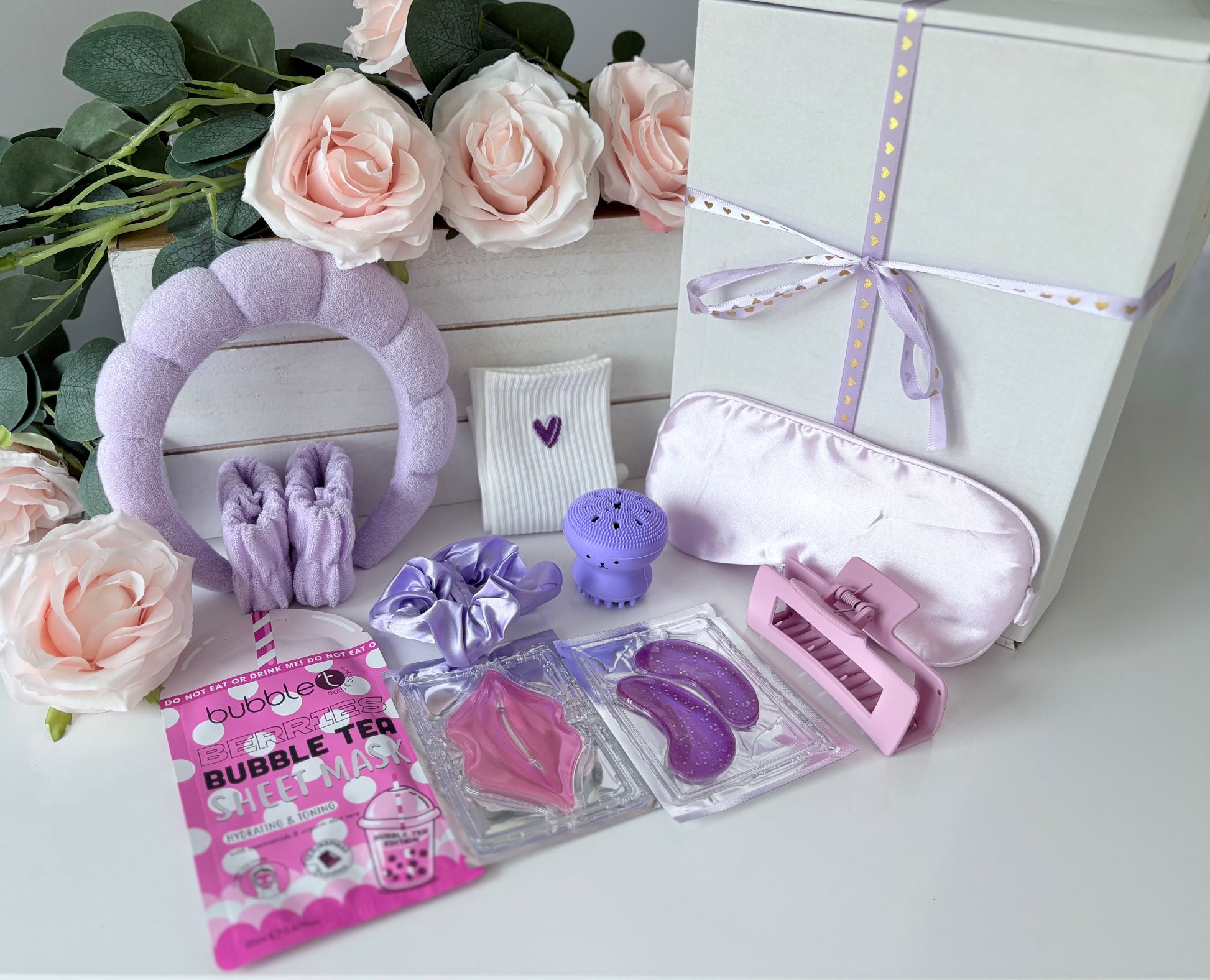 Treat yourself or delight someone special with the Mini Purple Pamper Box—a thoughtfully curated collection perfect for any celebration. Whether marking Mother's Day, a hen party, teen sleepover, tepee gathering, Valentine's Day, or welcoming a new mum, this luxurious set delivers the ultimate relaxation experience.